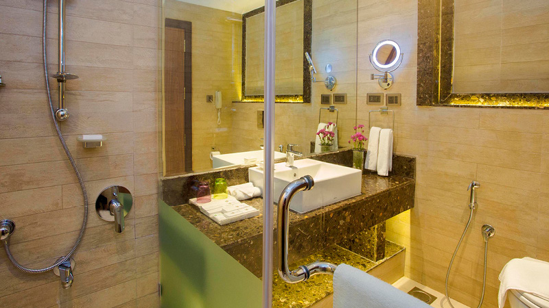 Vi bor i elegante værelser i kategorien Tropic Green Room med delvis udsigt til de omgivende bjerge. Værelserne har aircondition, satellit-tv, køleskab, kaffe- og tefaciliteter samt moderne badeværelser med badekar.