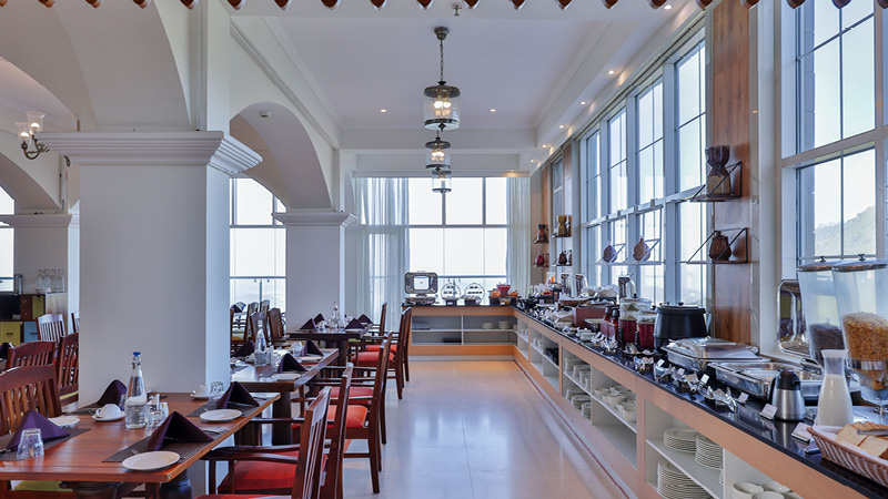 Hotellets restaurant serverer en bred vifte af internationale retter, herunder asiatiske, indiske, mellemøstlige og europæiske køkkener.