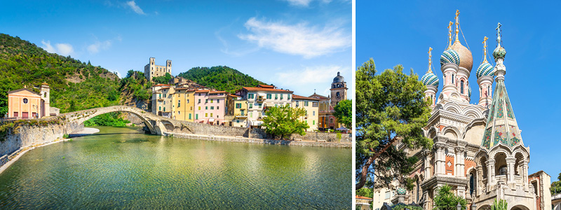 Efter frokost går vi til middelalderlandsbyen Dolceacqua. Det er landsbyen, der stjal Claude Monets hjerte, og som vi kan takke for mange af hans udødelige kunstværker. Vi vandrer langs Dolceaquas gader og beundrer de fine, farverige huse, der er overalt i landsbyen, mens vi nyder den italienske, afslappede atmosfære, der hersker her. Herefter går turen tilbage til Cannes.