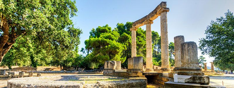 Fra den tidlige morgenstund drager vi videre langs Peloponnes' vestkyst. Forude venter et besøg i det antikke Olympia. De første olympiske lege fandt sted her i 776 f.Kr. og blev afholdt hvert fjerde år helt frem til 393 e.Kr. til ære for guden Zeus. Zeus havde til huse på Olympus bjerget, deraf navnet. Efter år 393 forbød den romerske kejser tilbedelsen af hedenske guder og de olympiske lege blev først genoptaget i 1896 i Athen. Selvom stedet er velbesøgt, hersker her alligevel en dejlig og fredfyldt atmosfære.
