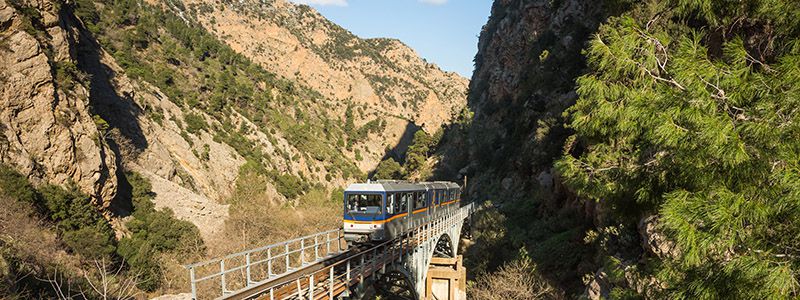Fra Kalavritas lille station sætter vi nedover i det berømte tandhjulstog som tidligere var eneste forbindelse til byen. Det er en tur på bare 20 km men den tilbagelægges på en time.