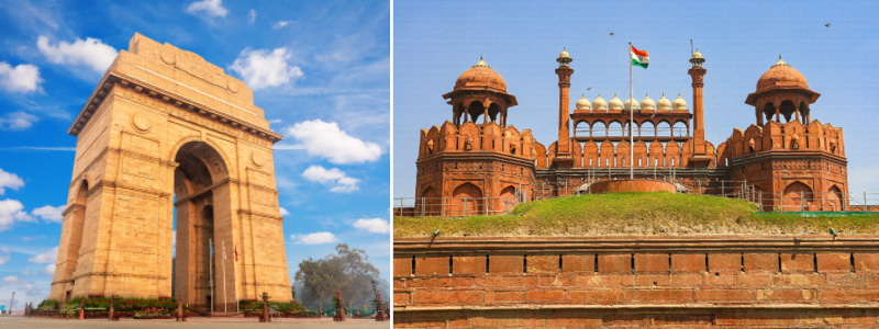 Billeder: India Gate og Det Røde Fort.