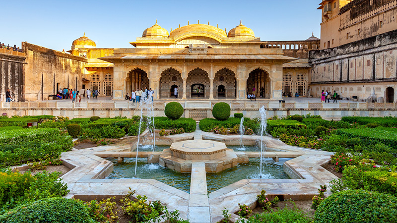Vi spiser frokost på en lokal restaurant, og om eftermiddagen besøger vi det berømte City Palace, et forbløffende kompleks af paladser, haver og gårdspladser prydet med dekorativ kunst og udskårne døråbninger. Paladsets museum rummer en samling sjældne manuskripter, kostumer, tæpper, miniaturemalerier og våben, der giver et godt indblik i Jaipurs kongelige historie.