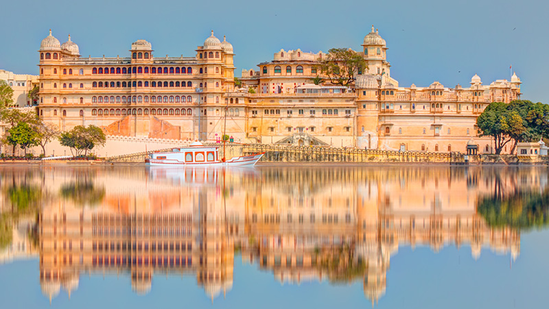 Dag 8: Byrundtur i Udaipur med besøg ved City Palace og markeder. Aftensejlads på Lake Pichola (M,F,A)