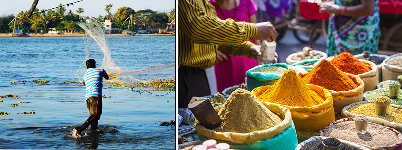 Glæd dig også til et indblik i de lokale fiskeres hverdag og landsbyernes charme. Og dagene ved Malabar Beach, hvor de gyldne sandstrande indbyder til ren afslapning.