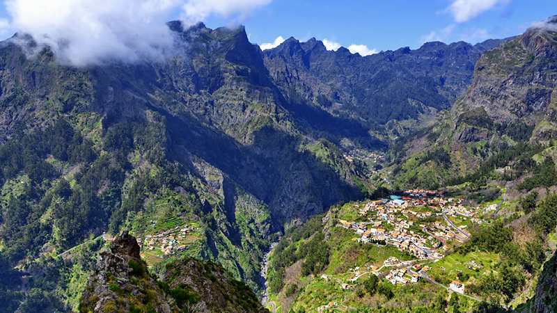Vi kører op i bjergene over Funchal og kommer hurtigt helt ind i en anden verden. Vi skal til udsigtspunktet over Nonnernes Dal, Eira do Serrado, et smukt område med en fantastisk udsigt til de store bjergmassiver og grønne terrasser samt landsbyen Curral das Freiras i bunden af dalen, som i folkemunde kaldes for Nonnernes Dal. Hvorfor dalen hedder sådan, fortæller rejselederen naturligvis også om, ligesom vi hører om livet i en indtil for få årtier siden isoleret dal.