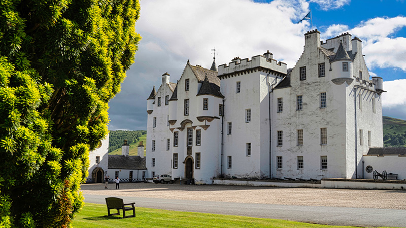 Dag 6: Blair Castle & Gardens, Tweed-butik og Highland Folk Museum (M, A)