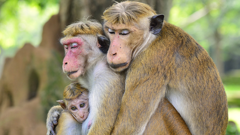Billede: Aber og elefanter i Minneriya Nationalpark.