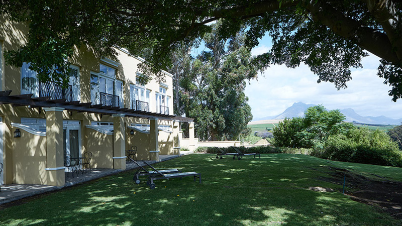 I en rolig og naturskøn del af vinlandet, lidt uden for Stellenbosch, finder vi det charmerende Devon Valley Hotel. Hotellet ligger højt med en betagende udsigt over vinmarker og olivenlunde, og i horisonten anes Helderberg-bjergene.