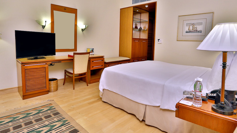 Hotellet har 85 moderne værelser fordelt på forskellige kategorier og byder på tre restauranter, en bar, udendørs swimmingpool, fitnesscenter og et ayurvedisk wellnesscenter. Der er også mulighed for at spille billard og skak, og der er gratis wi-fi på hele hotellet.