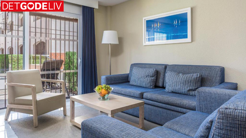 Hotellets 2-værelses lejligheder har separat soveværelse samt kombineret opholdsrum og køkken. Alle lejligheder har egen balkon eller terrasse, så du kan nyde det milde Middelhavsklima i private omgivelser. Opholdsrummet er hyggeligt indrettet med både sofa, tv og spisebord. Køkkenet er veludstyret med bl.a. komfur, ovn, mikroovn, elkedel, kaffemaskine, brødrister, køleskab med lille fryser samt opvaskemaskine, vaskemaskine og nødvendig køkkenservice. Her er trådløst internet i hele lejligheden samt badeværelse med badekar og hårtørrer.